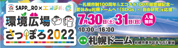 同イベントは、「~札幌市制100周年・エコチル発行部数100万部突破記念イベント~夏休みは札幌ドームへ!「SDGs」×「自由研究」を応援!」をテーマとした札幌市が主催する「みらいを想う総合環境イベント」です。今年は3年ぶりに札幌ドームでのリアル開催を中心に、パソコンやスマートフォンで楽しめるバーチャル展開も実施予定です。